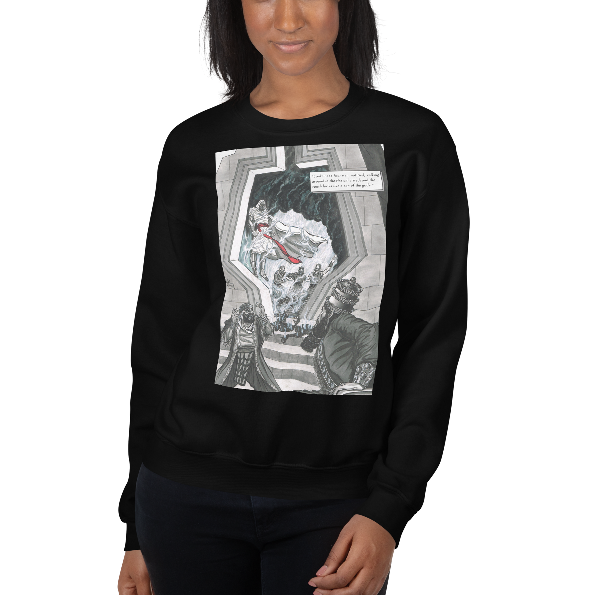 "The Fiery Furnace" crewneck sweatshirt represents unshakable faith in the midst of trial. Featuring artwork inspired by the three Hebrew boys and the Son of God in the fire, this design stands as a reminder that God is present in every flame — and faith will not be burned. Built for believers who wear Christian streetwear and faith-based apparel with boldness.
