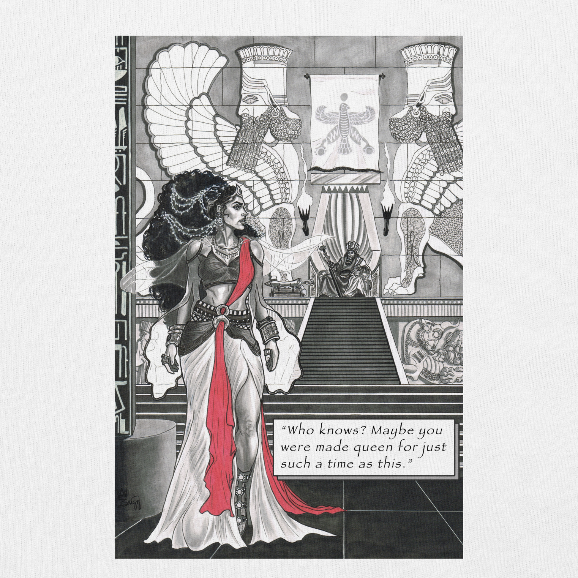 "Queen Esther" crewneck sweatshirt brings to life a story of courage, purpose, and divine timing. Inspired by the verse “For such a time as this,” this design reminds believers that God places us exactly where we need to be to walk boldly in our calling. Made for those who embrace Christian apparel and faith-driven streetwear, this piece blends meaning with modern style.